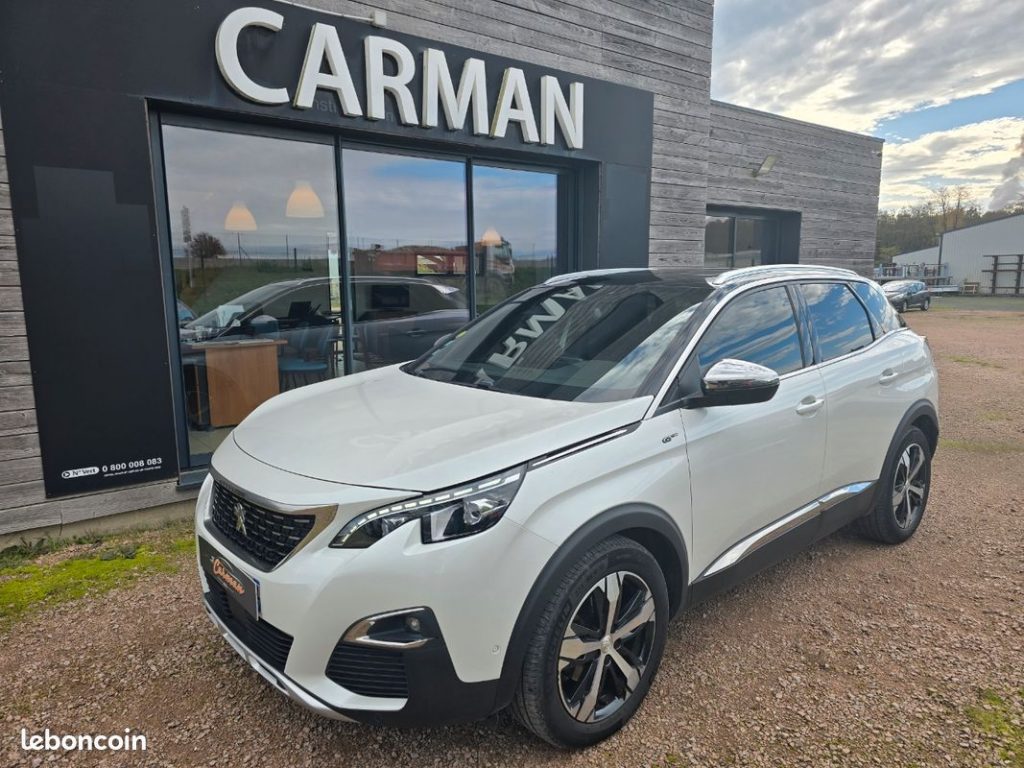 ✳️✅️Peugeot 3008 2.0 BlueHDi 180 ch GT S&S EAT8, suv,blanc nacré, 9 cv, 5 portes, première mise en circulation le 05/09/2018, garantie possible jusqu’à 60 mois Historique d’entretien complet et a jour. 5 places OPTIONS ET ÉQUIPEMENTS : Audio – Télécommunications : – Apple Car Play / Android Auto – Auto-radio commandé au volant – Bluetooth – Commandes vocales – Prise audio auxilliaire : usb Conduite : – Allumage automatique des feux – Carte main libre – Démarrage sans clé – Détecteur de pluie – Limiteur de vitesse – Palettes au volant – Régulateur de vitesse – Sièges sport – Start and stop Extérieur : – toit ouvrant panoramique – attelage amovible – Caméras 360° – Feux led – Ouverture de coffre main libre – Ouverture du coffre électrique – Peinture intégrale – Rétroviseurs dégivrants – Rétroviseurs électriques Intérieur : – Accoudoir central – Accoudoir central arrière – Ordinateur de bord – Pack cuir – Pack eclairage ambiance – Prise 12v – Rétroviseur interieur electrochrome – Siège(s) à mémoire de réglages – Sièges AV massants – Sièges chauffants – Vitres surteintées – Volant sport – climatisation automatique Pack : – Frein à main electrique – GPS couleur – Sièges électriques – Volant multifonctions Sécurité : – Avertisseur d’angle mort – Contrôle de pression des pneus – Fixations ISOFIX Autres équipements et informations : – Dimension des jantes: 19 – GPS tactile Véhicule visible chez Carman auto à torcy A 5 min de la gare TGV le CREUSOT montceau MONTCHANIN Nous pouvons vous récupérer à la gare… Audi Volkswagen Seat Renault